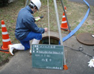 作業前に地下タンク内の酸素濃度を測定し、安全を確認します。※必要に応じて、送風機などを使用し作業します