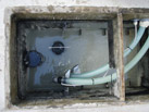 ※1.通常は設置工事前にグリストラップ槽内の抜き取り清掃を行い設置しますが、今回は清掃なしで設置をしたので、槽内に油脂がかなり溜まっています。